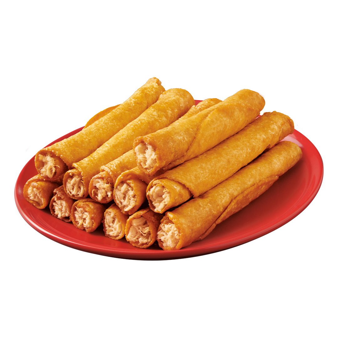 Taquitos (tortilla enrollada) rellenos de pollo.